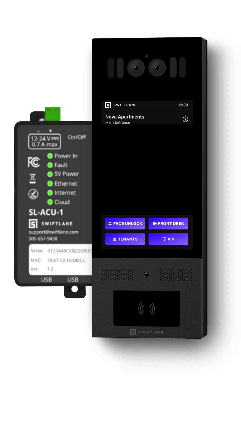 The Swiftlane SL-ACU-1 ensures top-level security by verifying access credentials against its database to control entry to specific areas at designated times, ensuring your property is always protected.