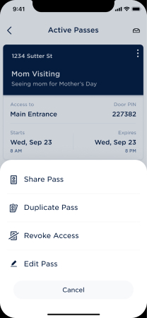 Assign unique six-digit single-use or multi-use PINs for visitors or deliveries. Easily revoke PINs immediately.