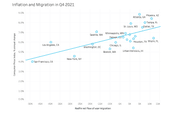 The markets with the most inward migration tend to have higher inflation, according to new data from Redfin. The influx of people puts upward pressure on costs such as housing, utilities, and transportation.