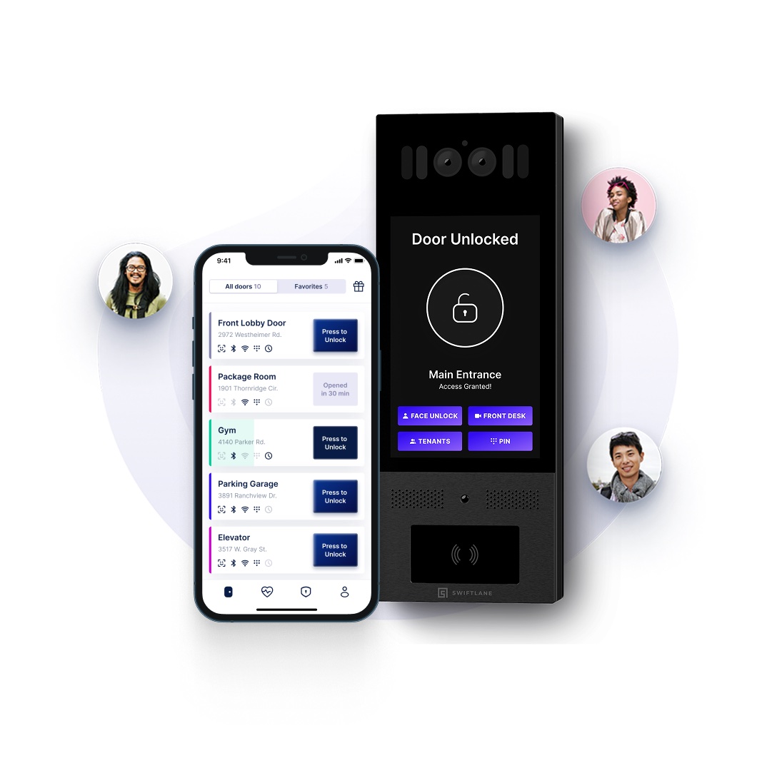 Swiftlane is the only multifamily solution that offers face recognition access control. Our touchless technology combines high security with convenience for the most secure, seamless way to access any building or community.