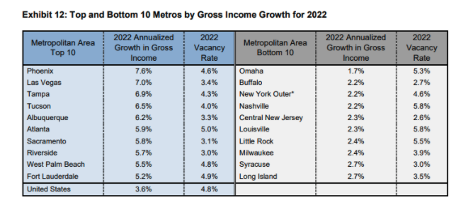 Freddie Mac recently released its 2022 Multifamily Outlook report showing the top and bottom 10 metros by gross income growth for 2022: