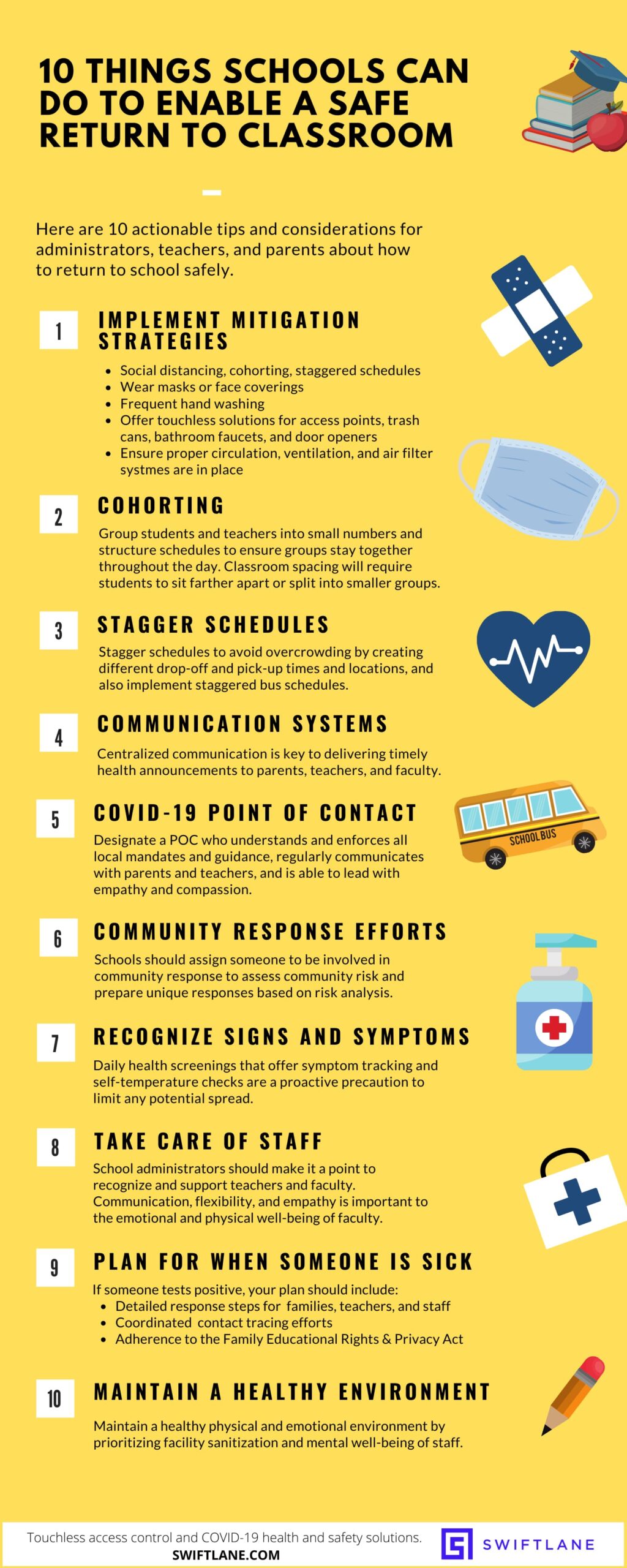 Check out the infographic below for the answers to these questions and more guidance around the 10 things schools can do to enable a safe return to the classroom this fall.