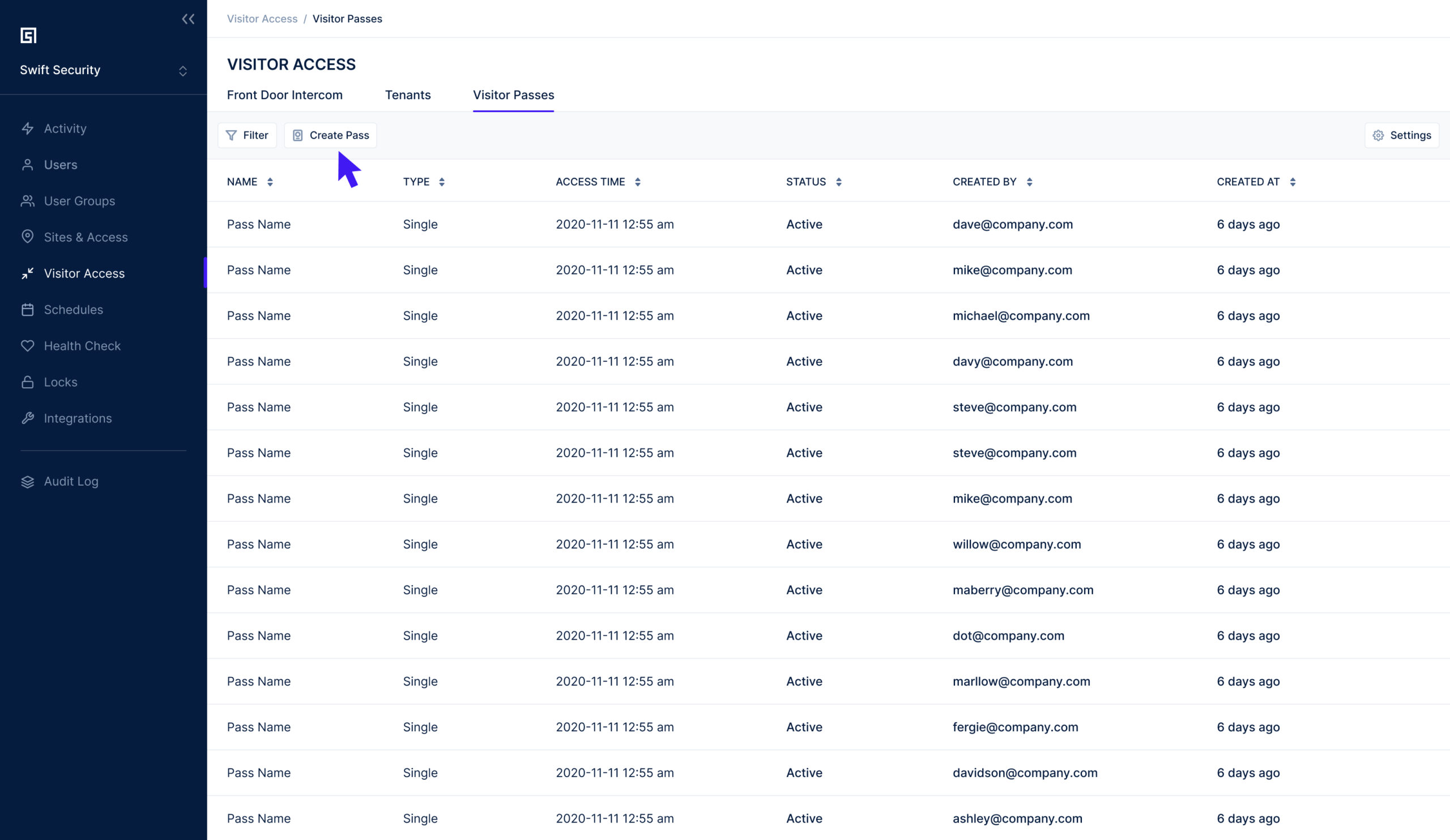 With Swiftlane, neither the property manager nor renter has to be restricted by scheduling conflicts. Prospective renters can give their availability, and property managers can generate a secure, single-use PIN code during that time. The renter can then gain access to the apartment building using the code to take a self-guided tour for the allotted time. The property manager generates this code from the admin dashboard remotely and does not have to make a trip to the property.