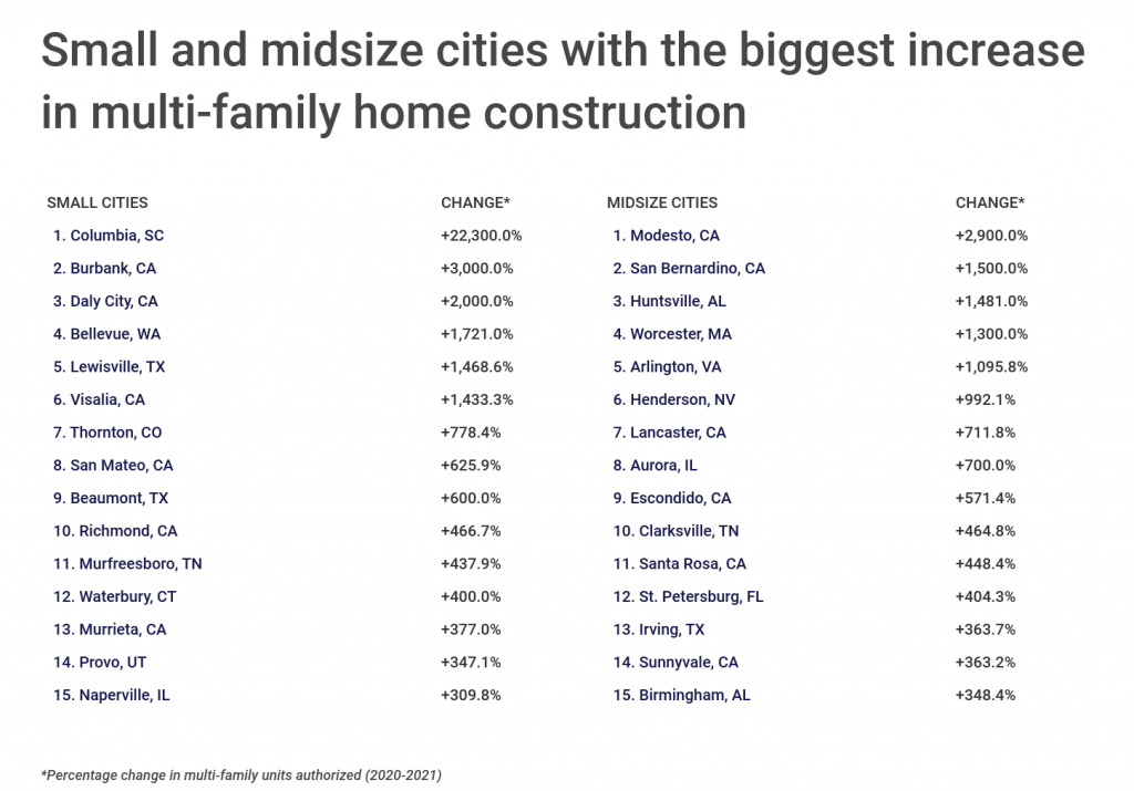 According to Lattice Publishing which released a new report on multifamily construction, all types of markets saw construction growth between 2020 and 2021.