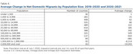 Story: According to new Census Bureau research, smaller counties on average enjoyed net increases in migration over the past year, while larger counties (500,000+ population) generally seeing outward migration.