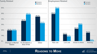 The Midwest and South benefited the most from this migration, with the West and Northeast seeing negative inward migration. Analysis of this data shows that more than any other reason, renters and homeowners moved primarily for new jobs.