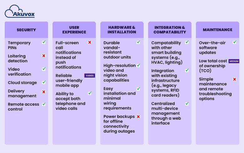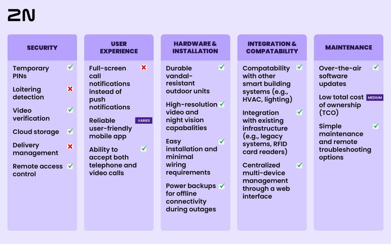 - Pros: Future-proof technology, accessible for all residents, user-friendly app, minimal wiring, retrofits with legacy systems, doesn’t need master stations, integrates with any property management system, excellent security features, superior customer support.