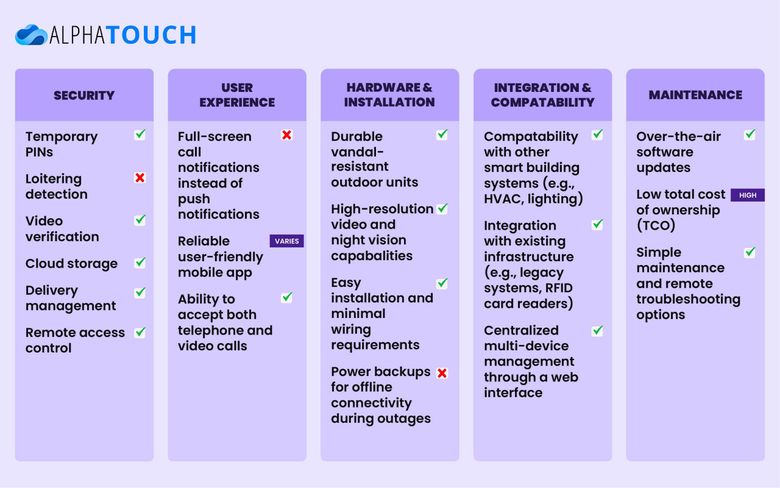 Alpha Communications manufactures two-way video intercom systems for apartments suitable for multifamily buildings: the GB2 2-Wire Color Video Intercom System and the AlphaTouch Cloud-Based PoE Video Intercom System. In this article, we are reviewing the AlphaTouch video intercom.