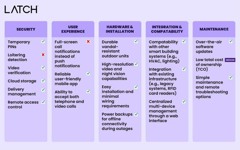 Latch is best known for its smart lock product line, but has recently introduced its multi-tenant intercom system. Its intercom is part of a larger, all-in-one building solution called LatchOS, which includes building and individual unit access and management.